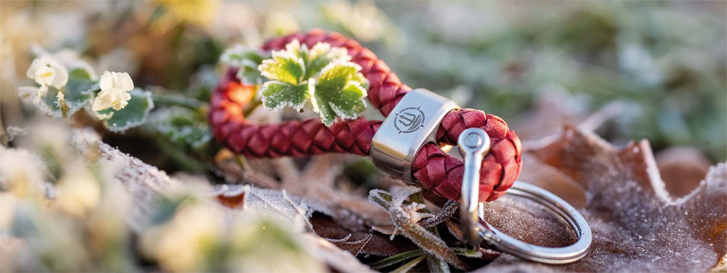 Seemannsgarn Schlüsselkette Ø 8mm Leder geflochten Edelstahl matt rot