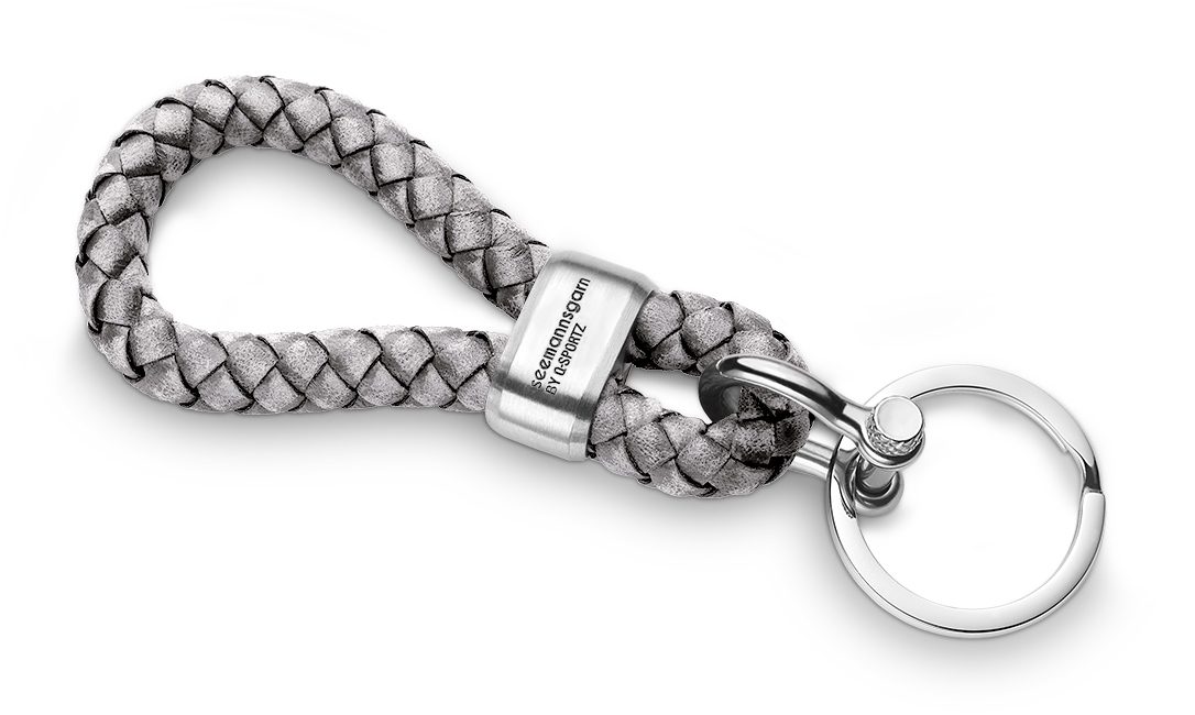 So auch diese stylische Schlüsselkette in der Farbe grau.